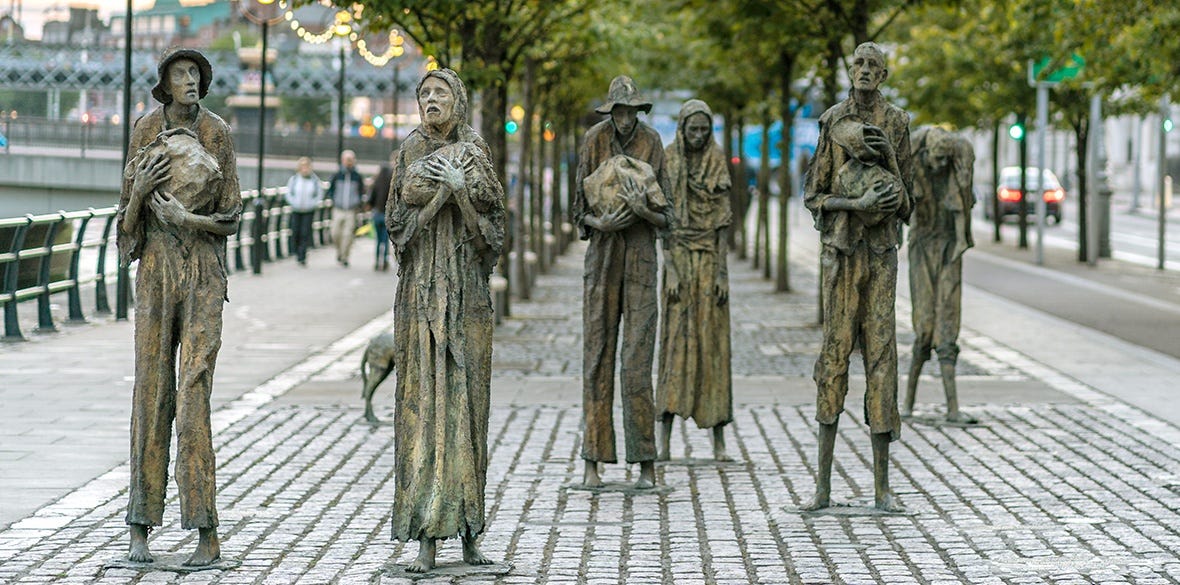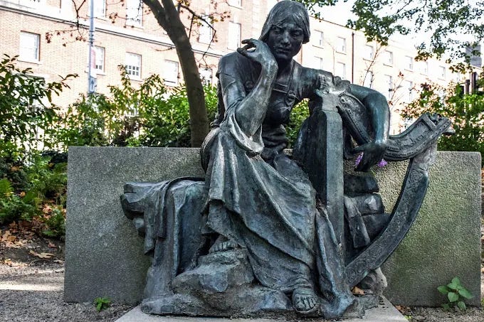 The park also features busts of Irish historical and political figures, such as Michael Collins, other statues like the Merrion Park Statue and countless flowers. Along Custom House Quay in the Dublin Docklands is a memorial to Ireland’s devastating Great Hunger in the mid-19th century created by the UK government. On Dublin’s Sullivan Road stands the Molly Malone statue.